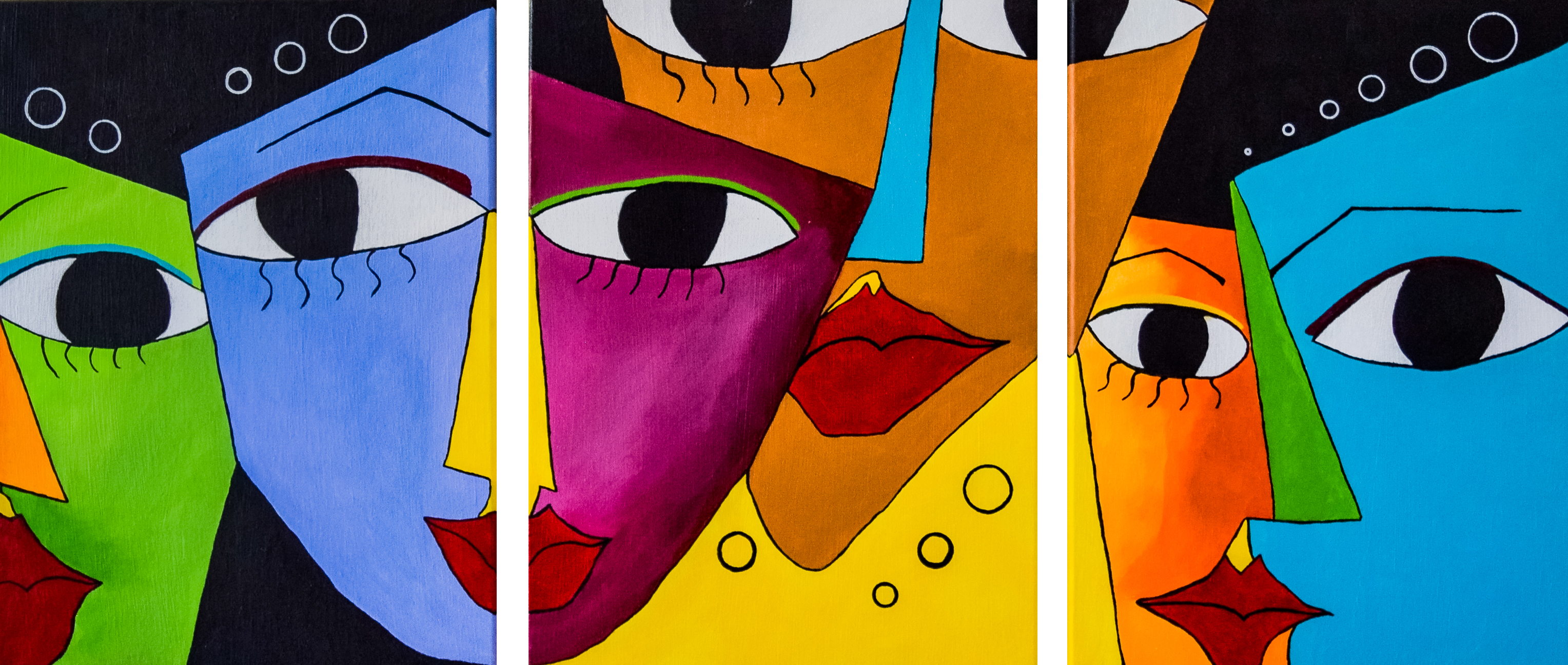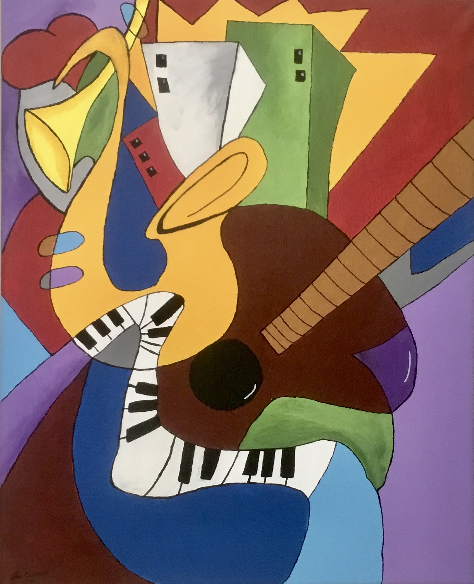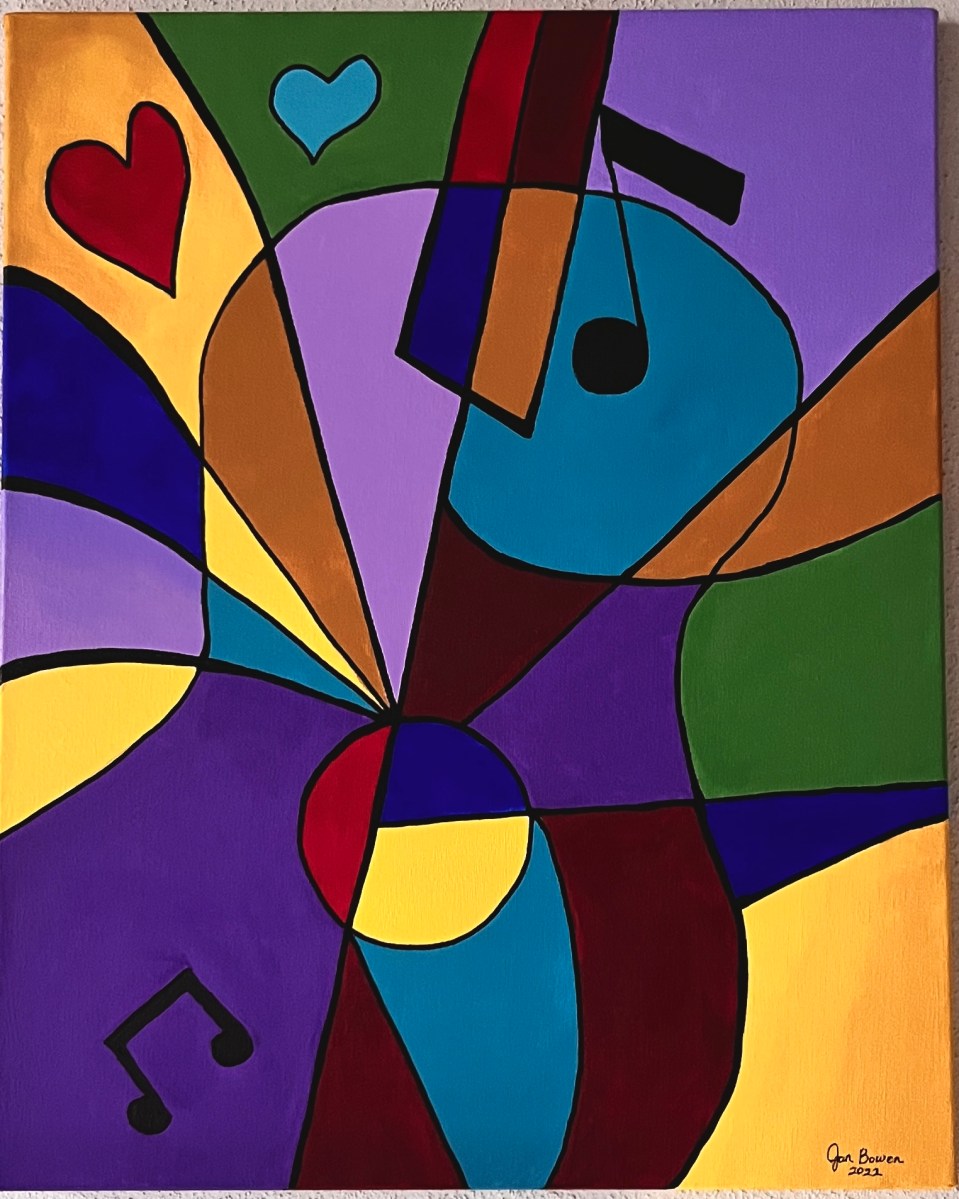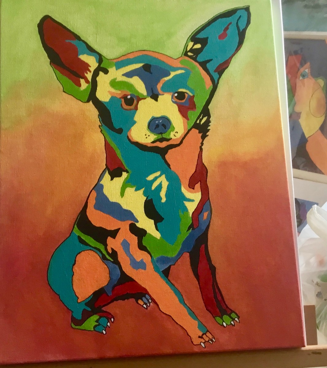 My paintings are acrylic on canvas unless otherwise noted. The brilliant colors and whimsical shapes are influenced by the warmth and festivity of Mexico. Paintings are shipped on a stretcher, ready to frame or hang. If you would like more photos before purchasing, please ask.