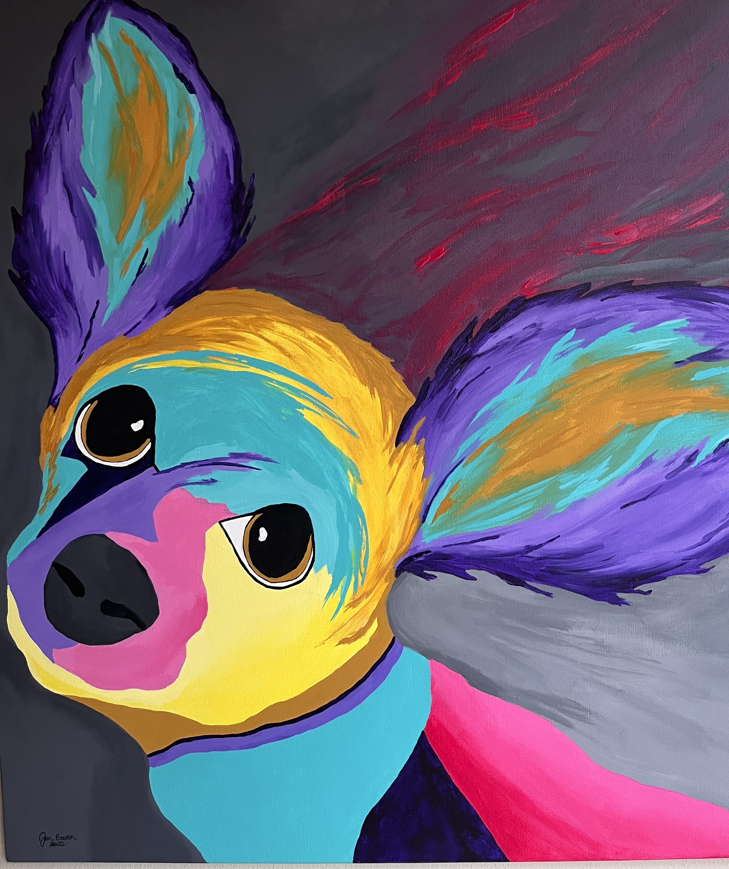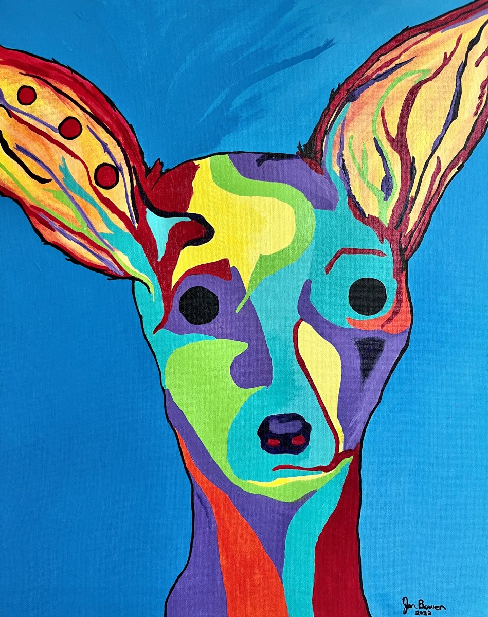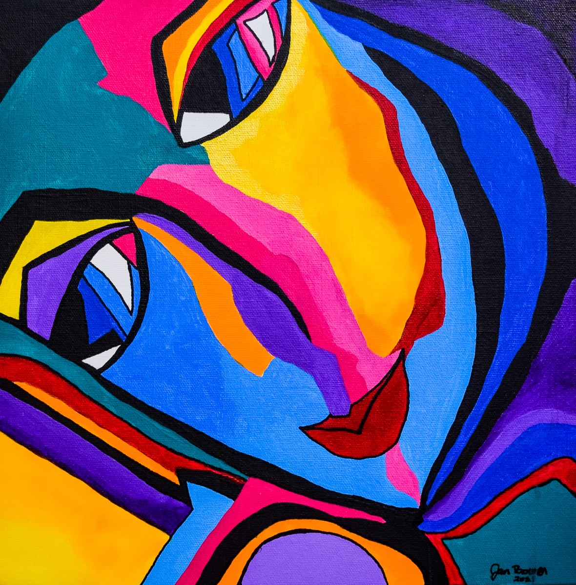 My paintings are acrylic on canvas unless otherwise noted. The brilliant colors and whimsical shapes are influenced by the warmth and festivity of Mexico. Paintings are shipped on a stretcher, ready to frame or hang. If you would like more photos before purchasing, please ask.