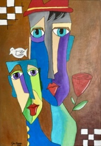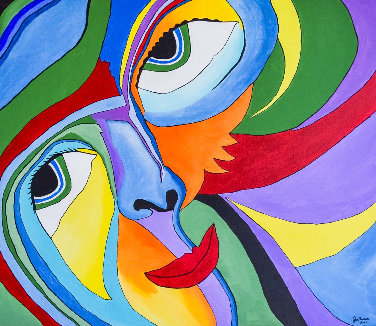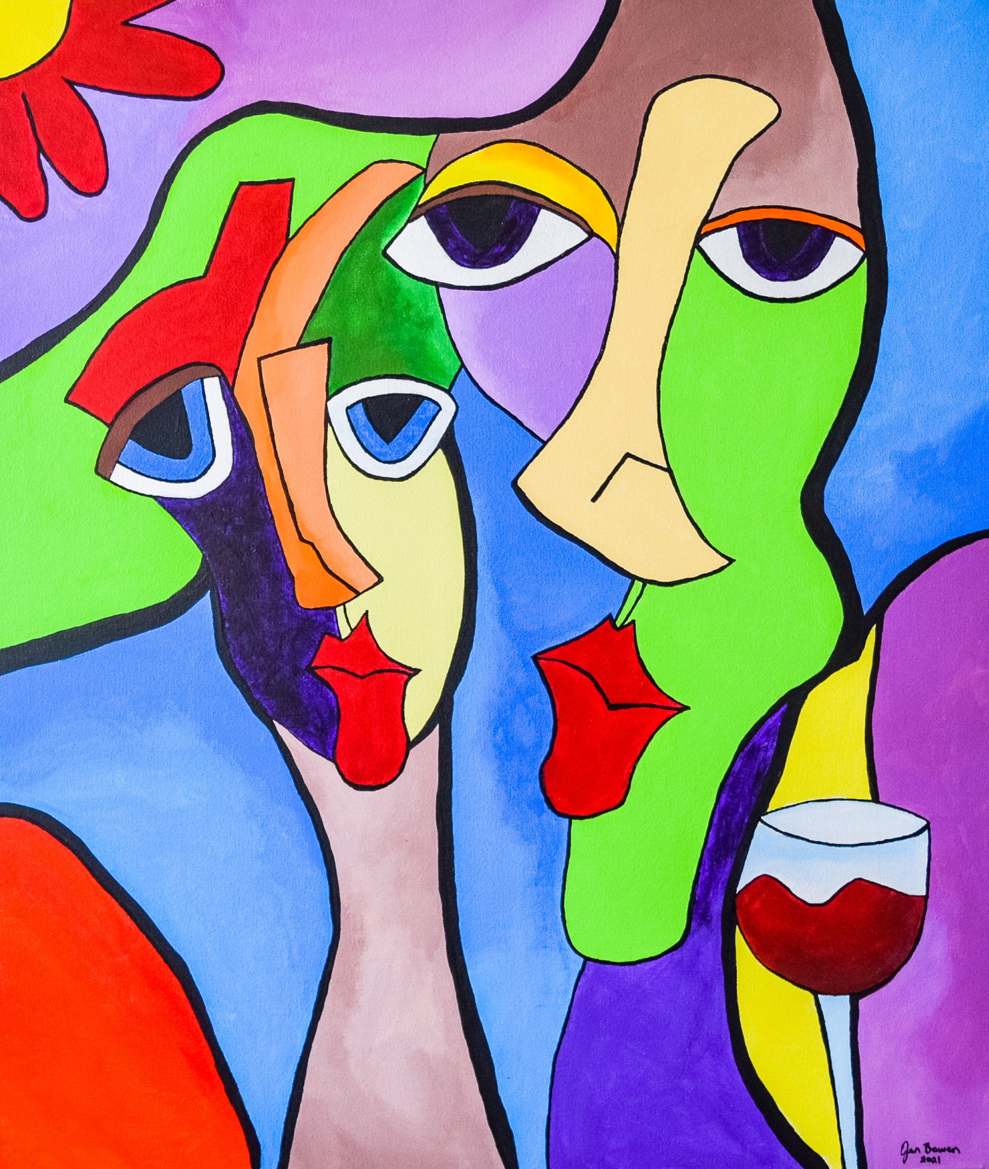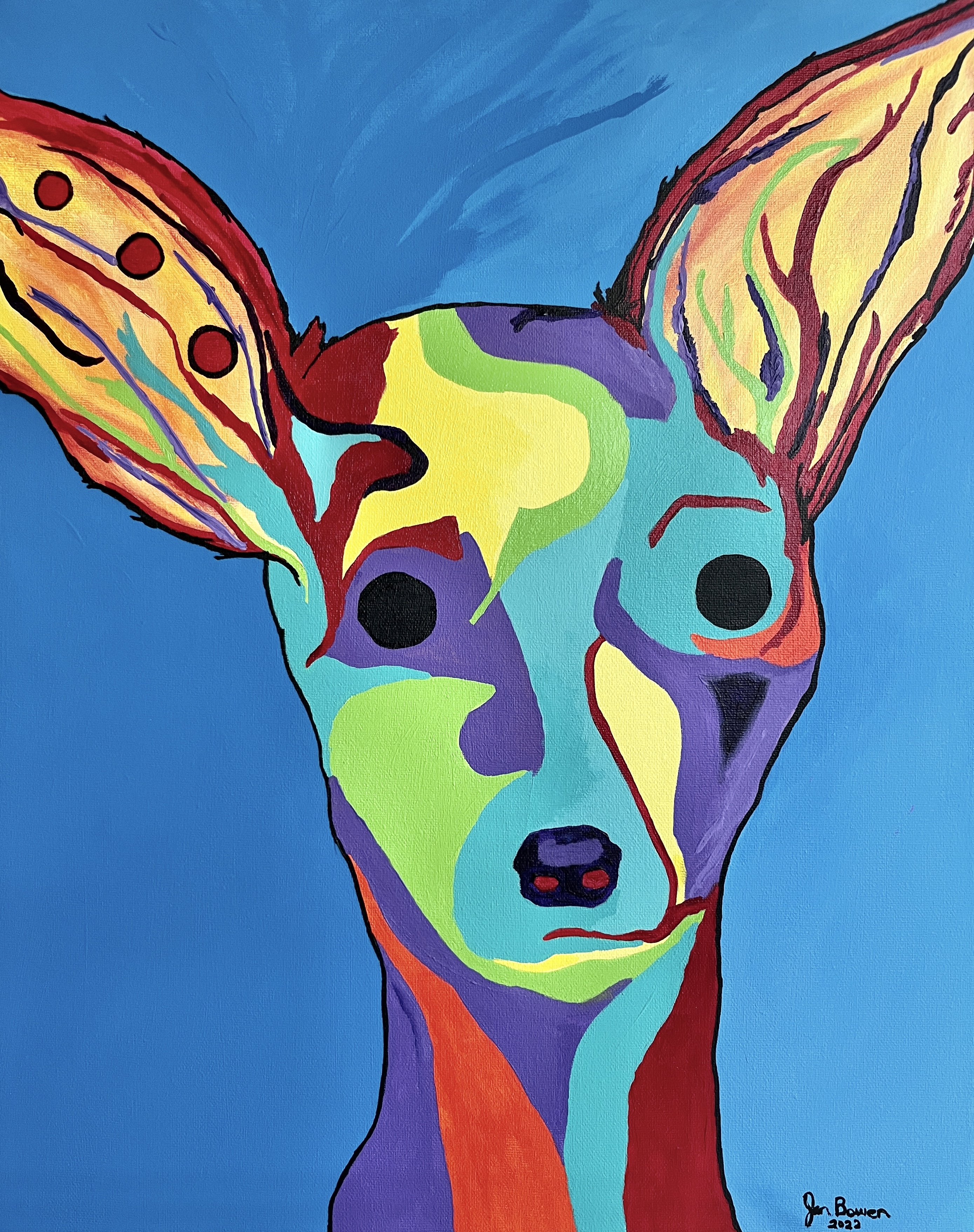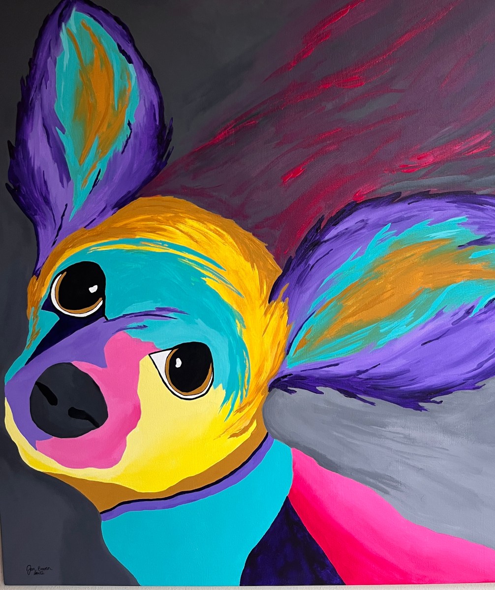My paintings are acrylic on canvas unless otherwise noted. The brilliant colors and whimsical shapes are influenced by the warmth and festivity of Mexico. Paintings are shipped on a stretcher, ready to frame or hang. If you would like more photos before purchasing, please ask.