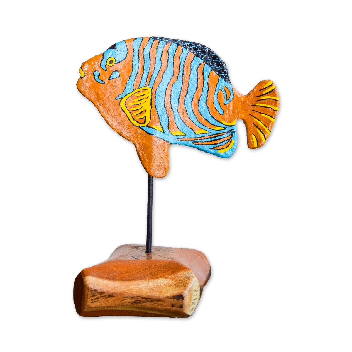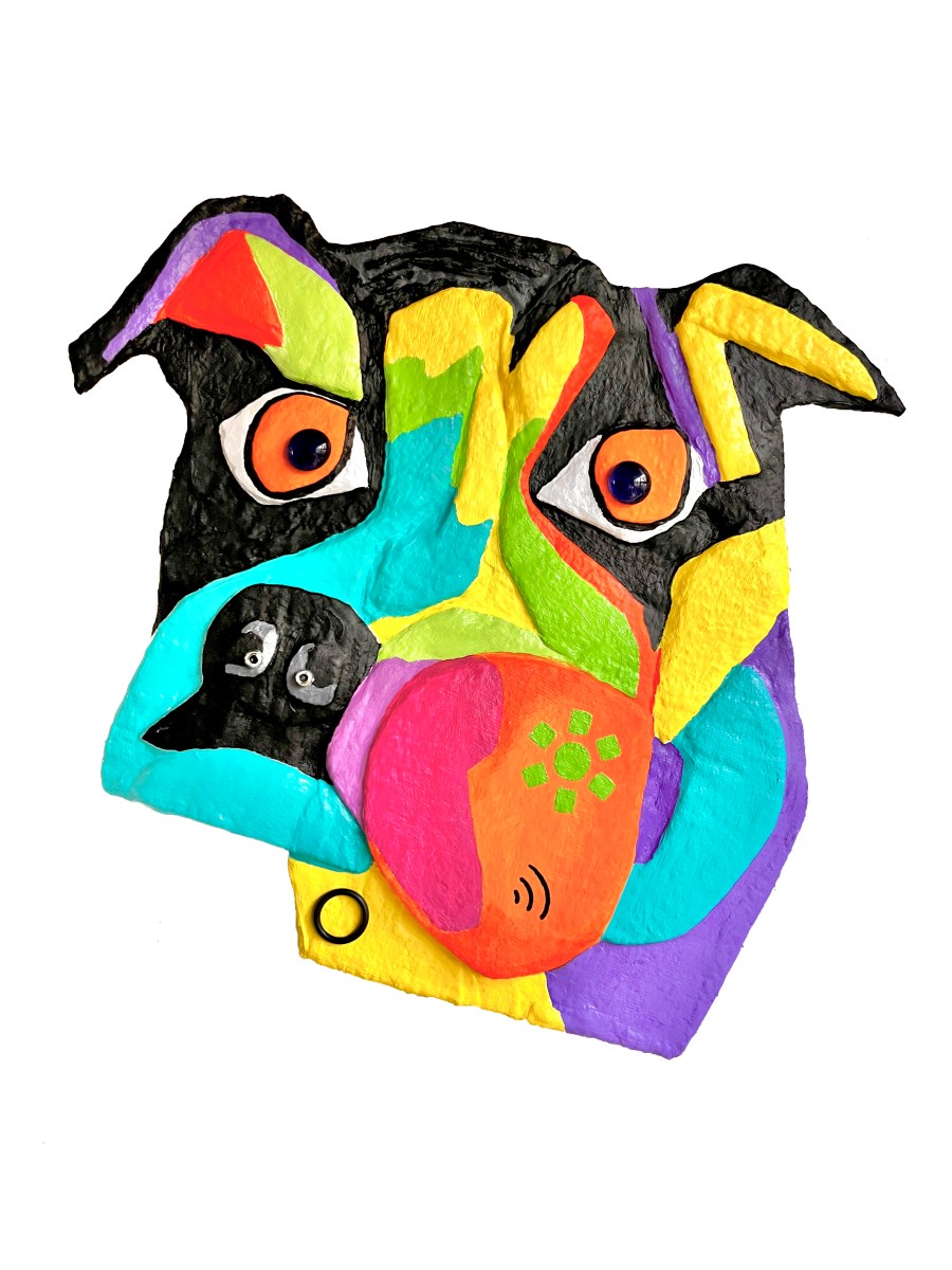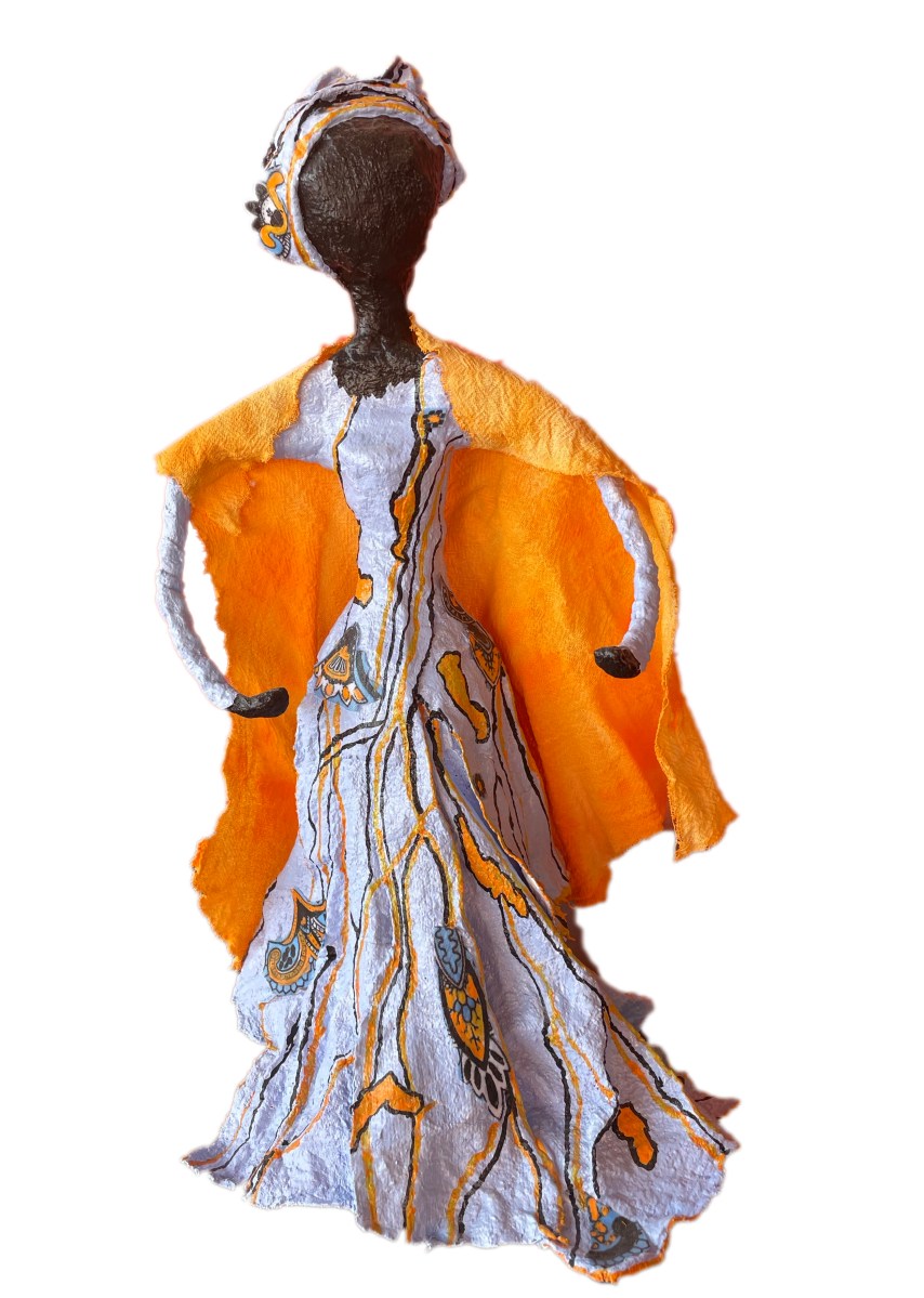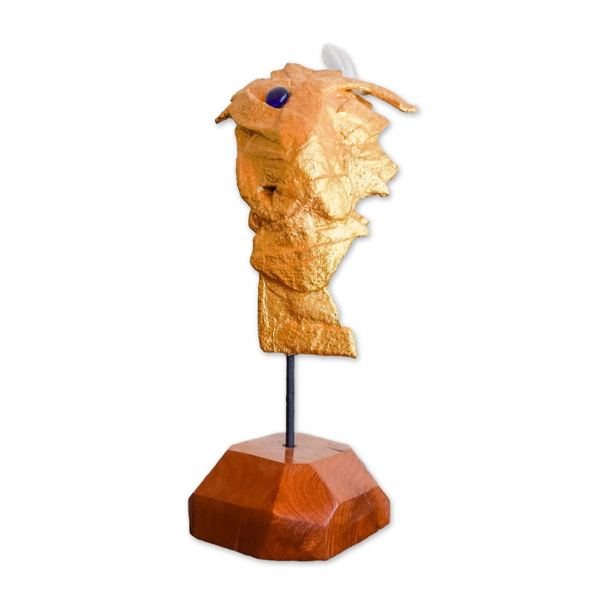 My sculptures are made of “stovetop porcelain” clay with acrylic paint and adornments of wire, plastic, fabric or glass. These fun, whimsical conversation pieces are inspired by the real-life and fictional characters I see every day. Each sculpture comes with its own unique solid wood display stand. If you would like more photos before purchasing, please ask.