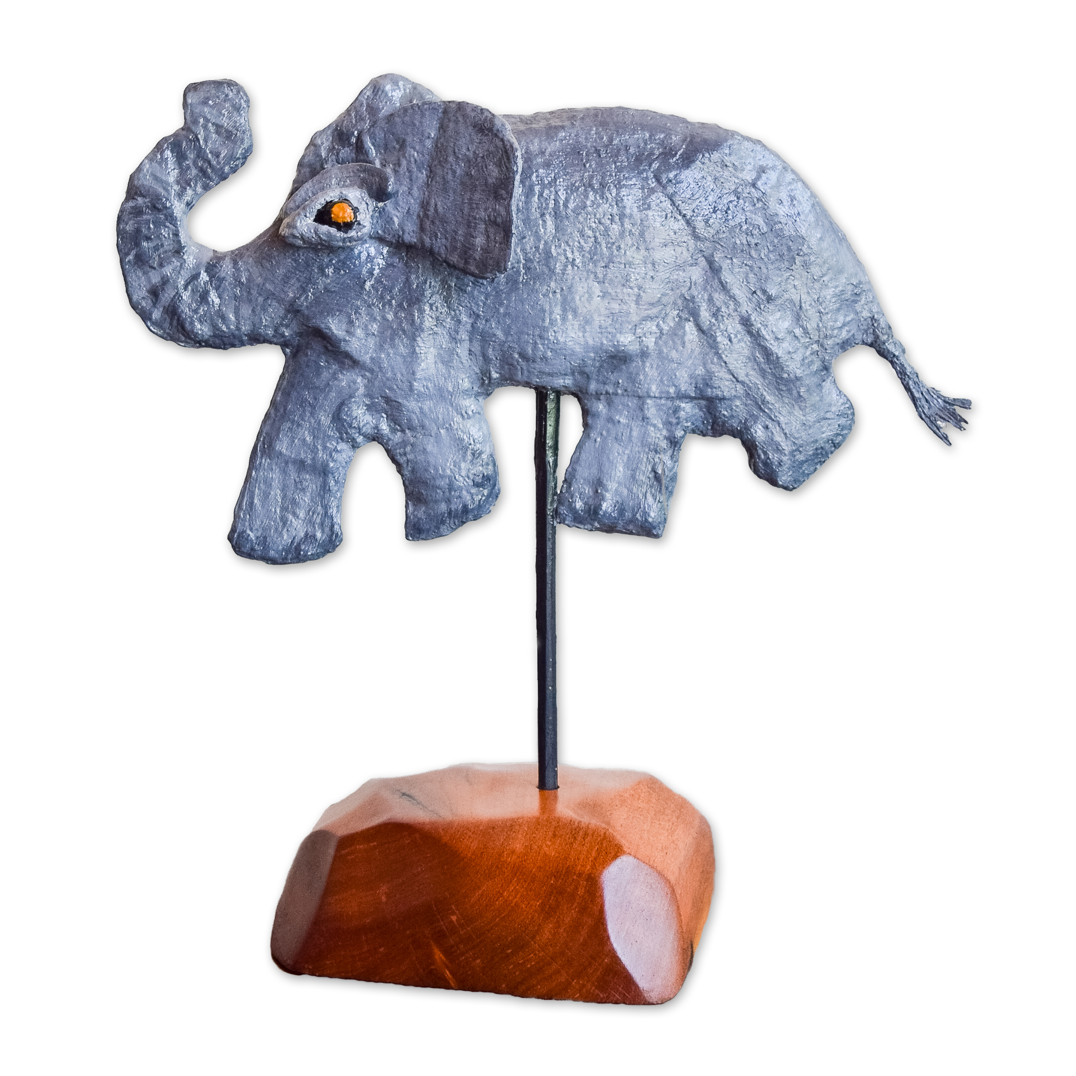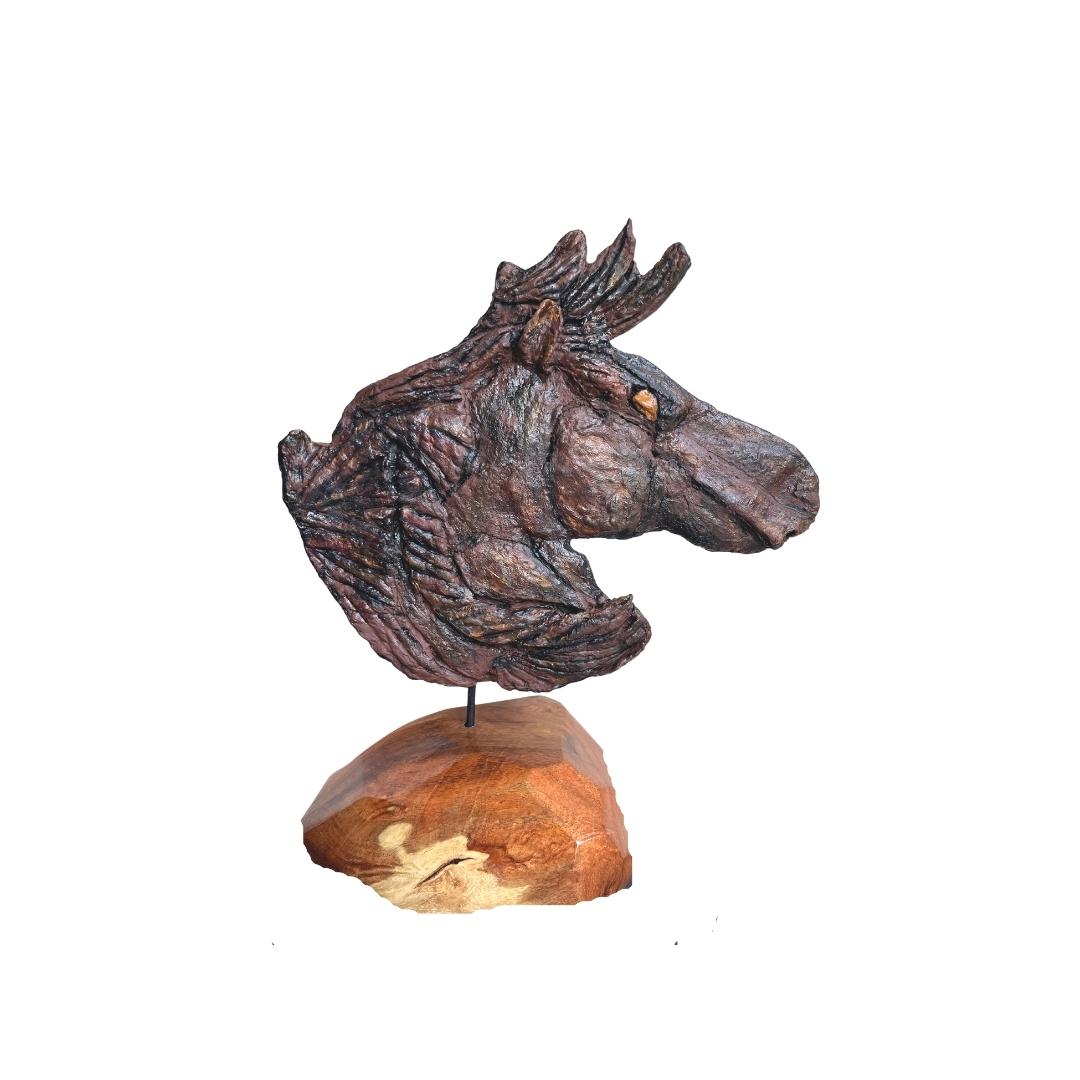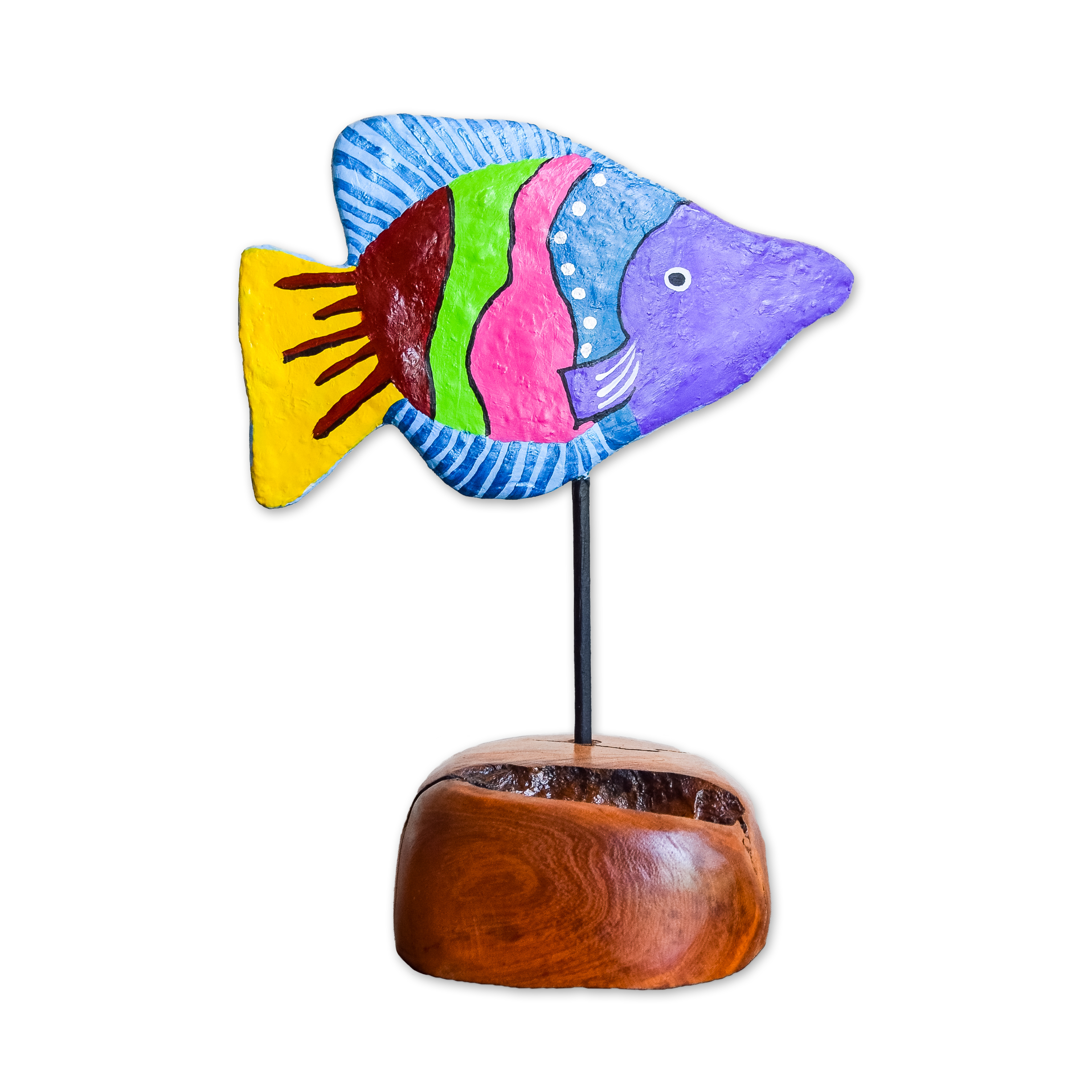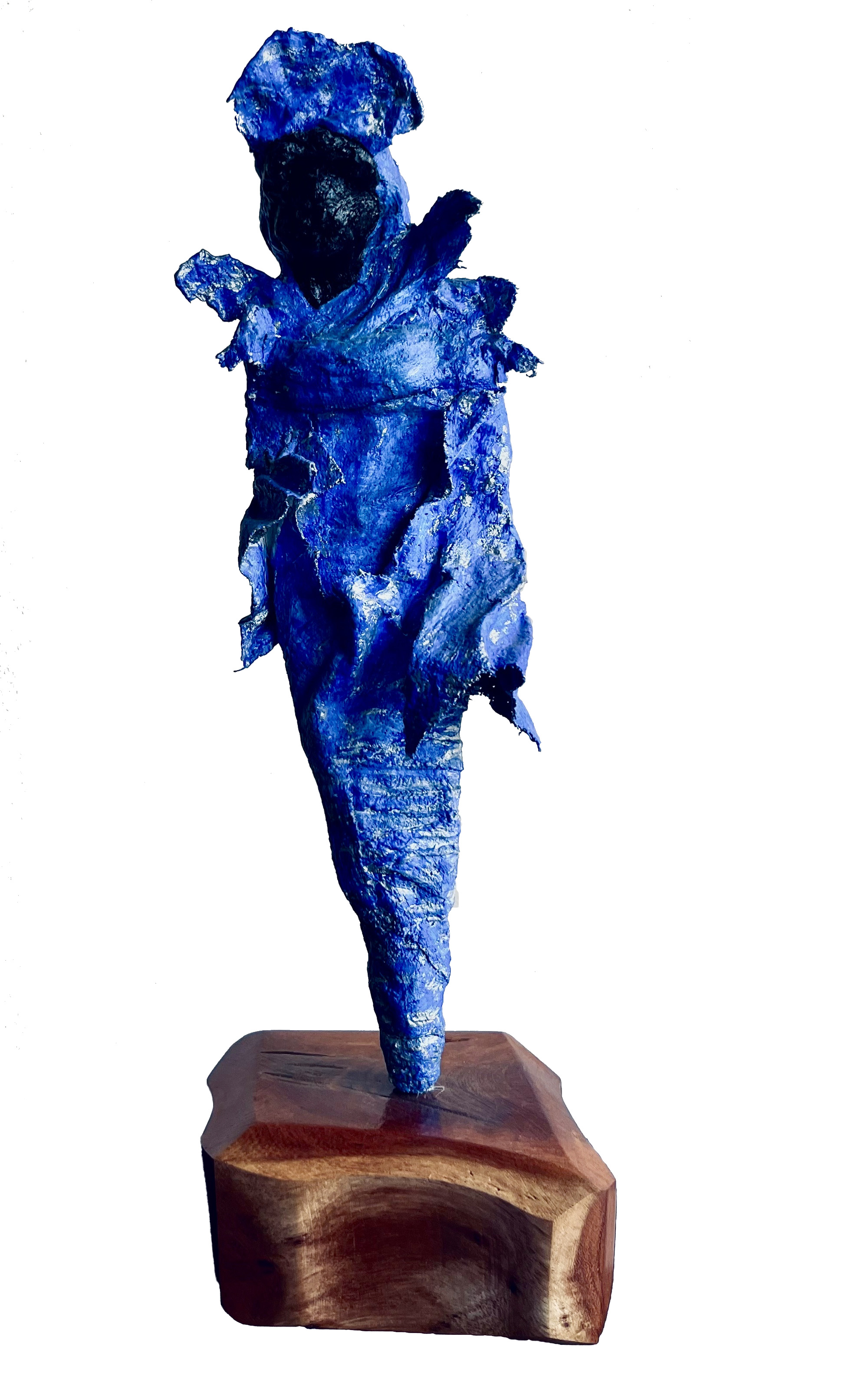 My sculptures are made of “stovetop porcelain” clay with acrylic paint and adornments of wire, plastic, fabric or glass. These fun, whimsical conversation pieces are inspired by the real-life and fictional characters I see every day. Each sculpture comes with its own unique solid wood display stand. If you would like more photos before purchasing, please ask.
